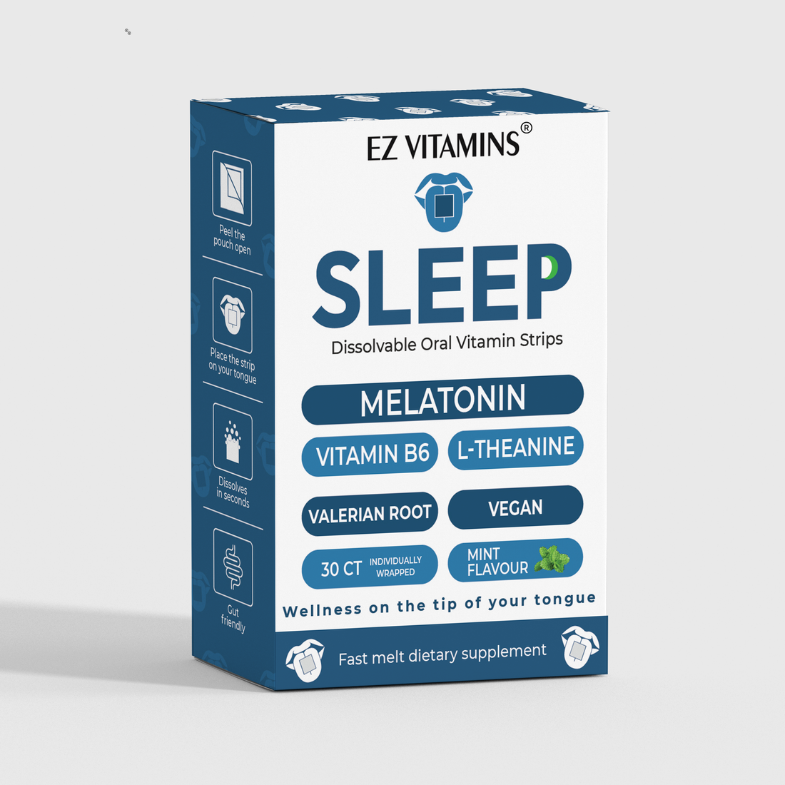 EZ VITAMINS Sleep Strips – 5 mg Melatonin + L-Theanine & Valerian Root (30 ct)
