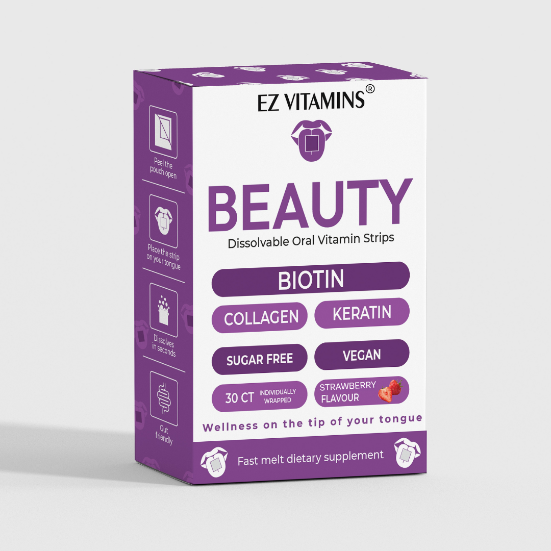 EZ VITAMINS Beauty Strips – Biotin + Collagen for Hair, Skin & Nails (30 Strips)